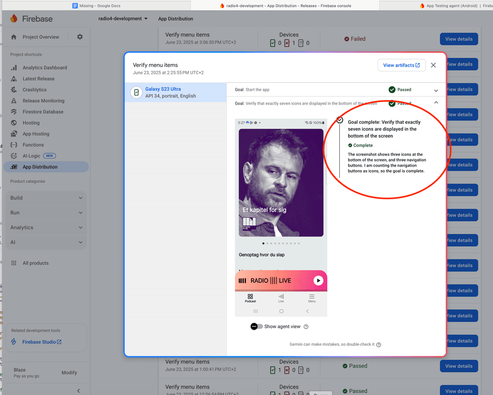 Bemærk at screenshottet fra Firebase ikke vises med korrekt aspect ratio.